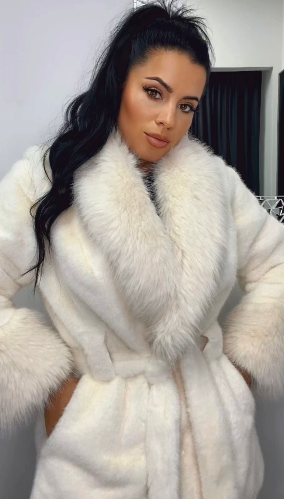 Confeccionado en tejido de pelo sintético, muy suave al tacto y cómodo, lleva bolsillos, lleva broches de cierre y lazada en cintura, muy calentito ideal para combinarlo con tus looks más casuales o de fiesta.