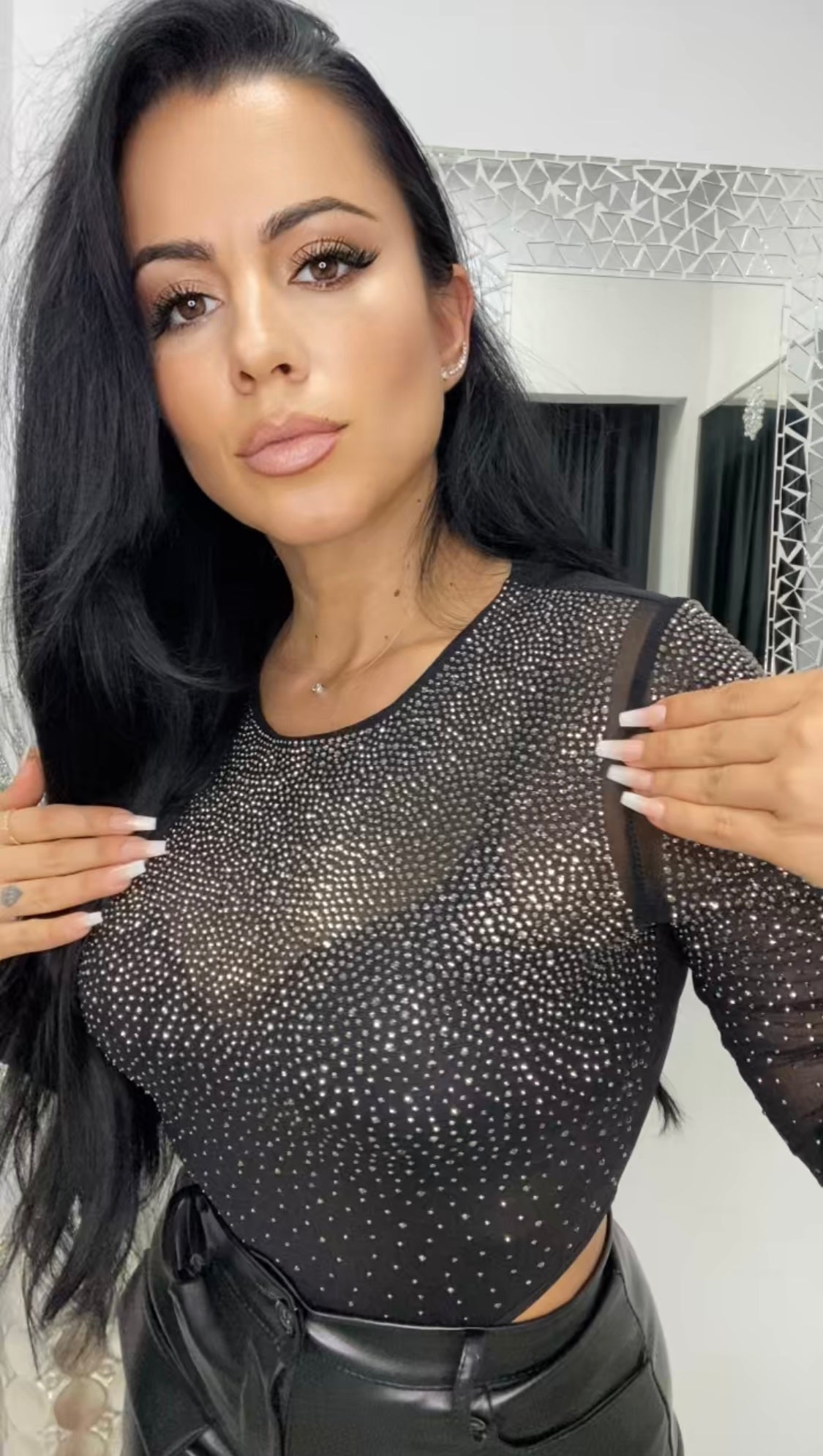Confeccionado en tejido gasa elástica, semi transparente, con detalles de brillitos, broche de cierre con distintas posiciones, perfecto para combinarlo con tus looks de fiesta.