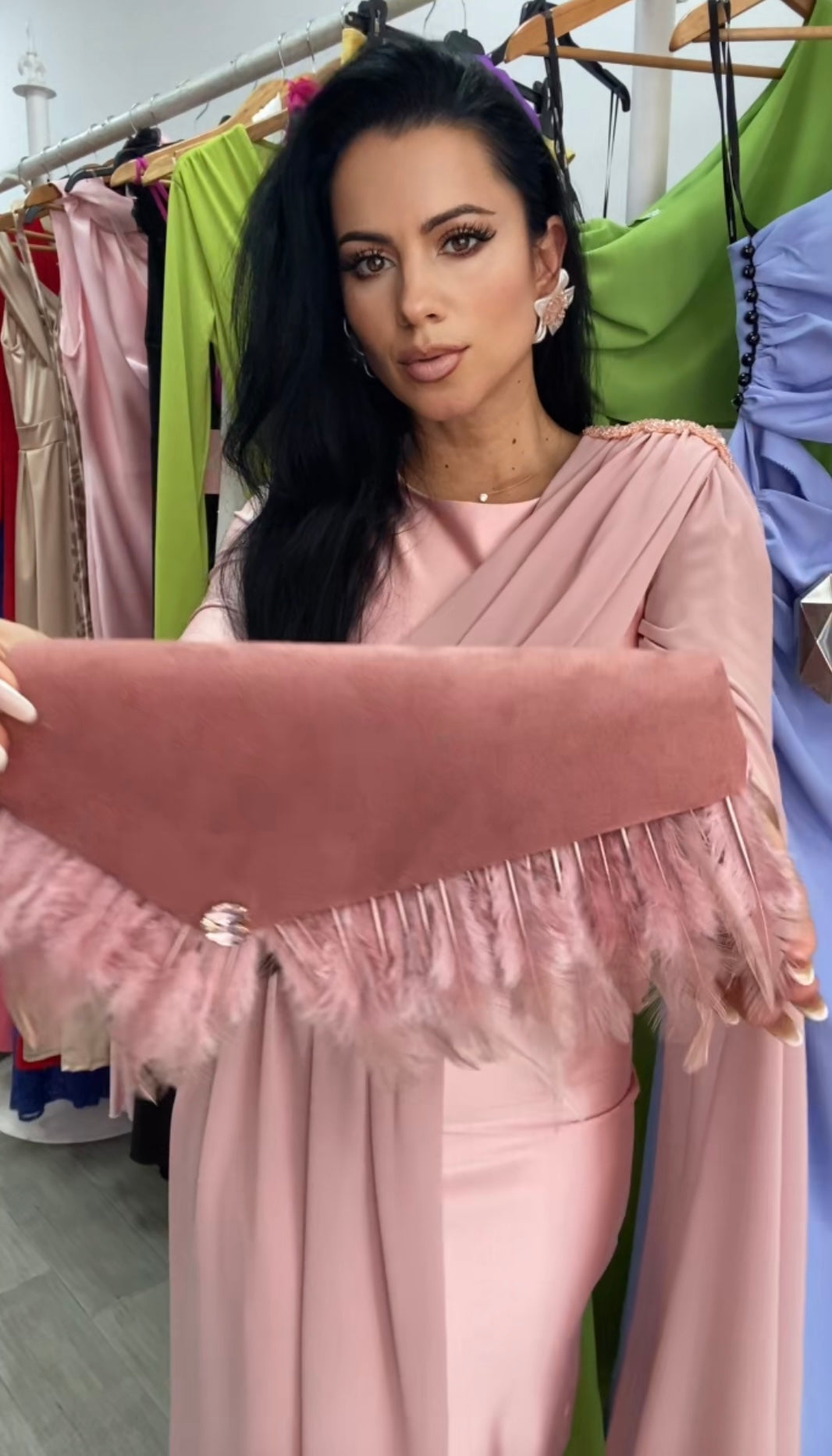 CARTERA PLUMAS ROSA MAQUILLAJE