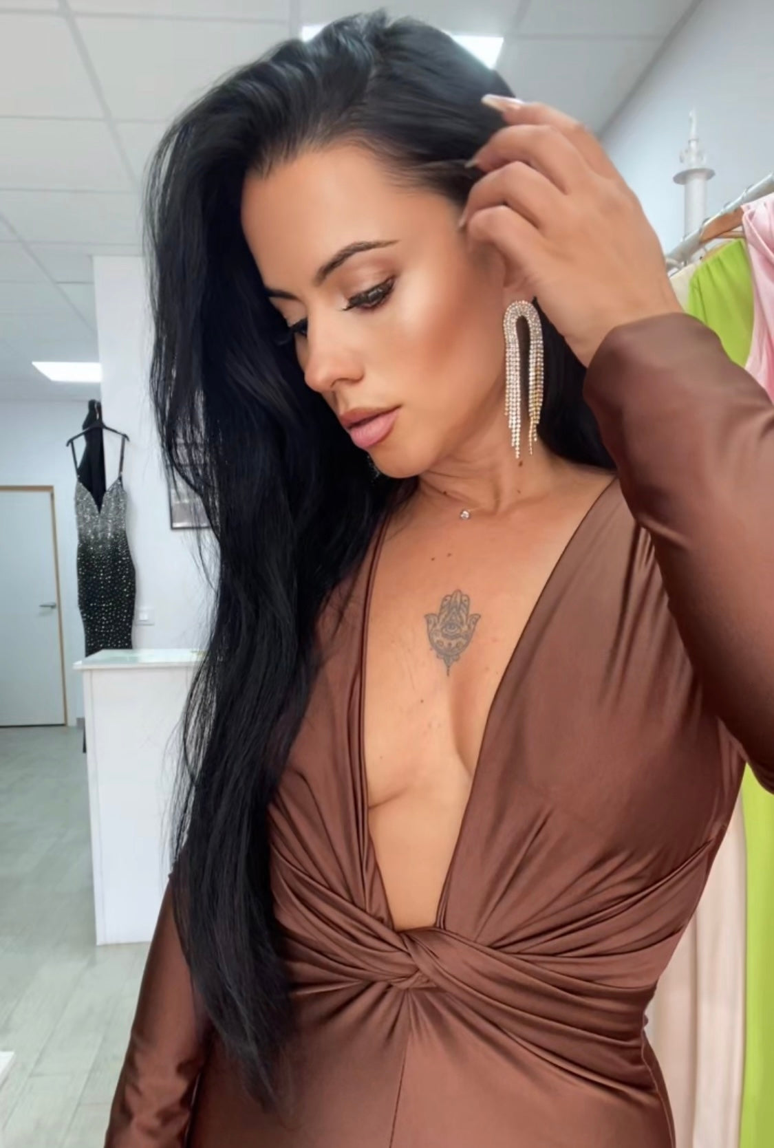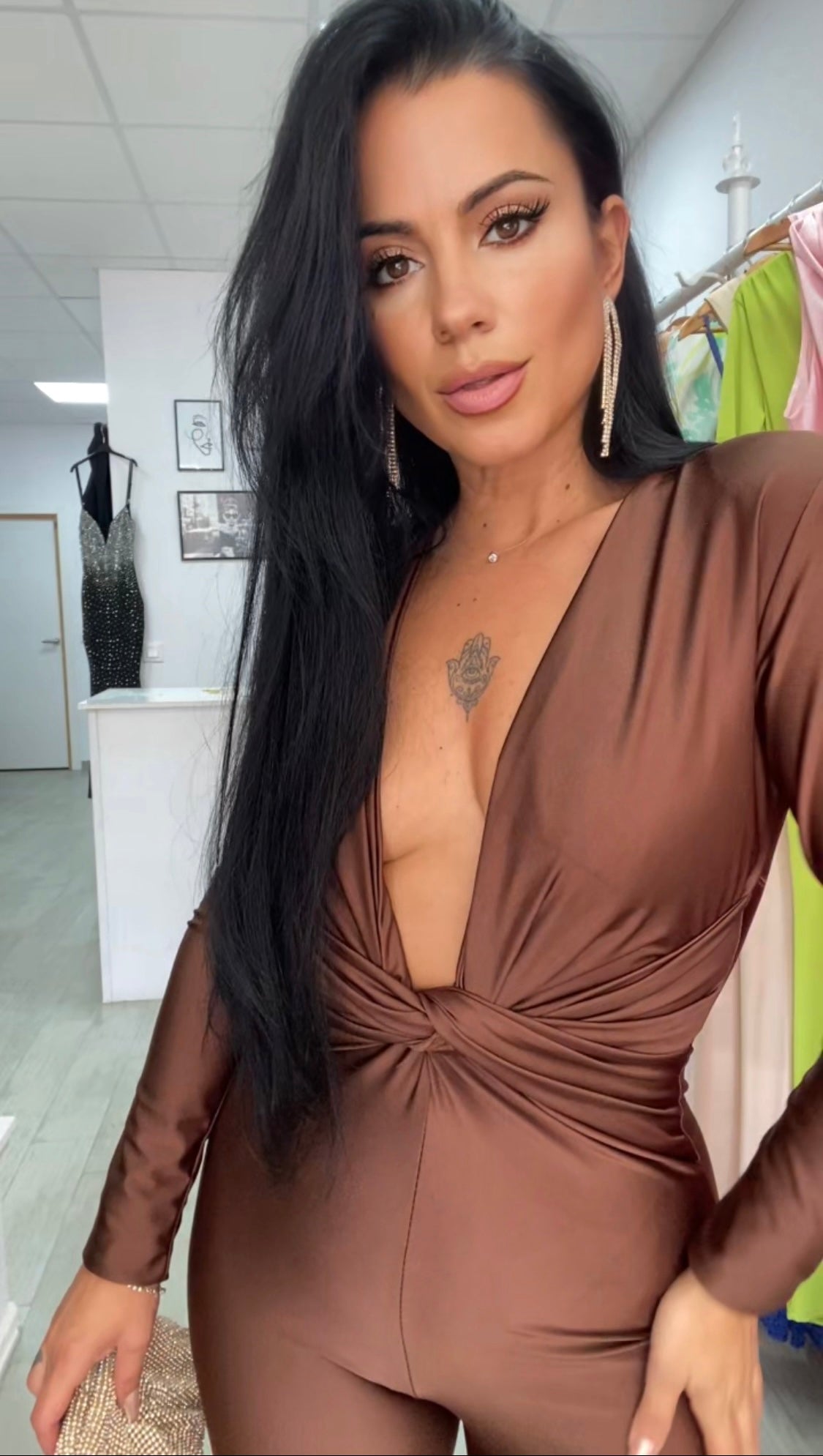 Confeccionado en tejido licra satinada,corte entallado, diseño de nudo en cintura,incluye hombreras,perfecto para tus fiestas y eventos.