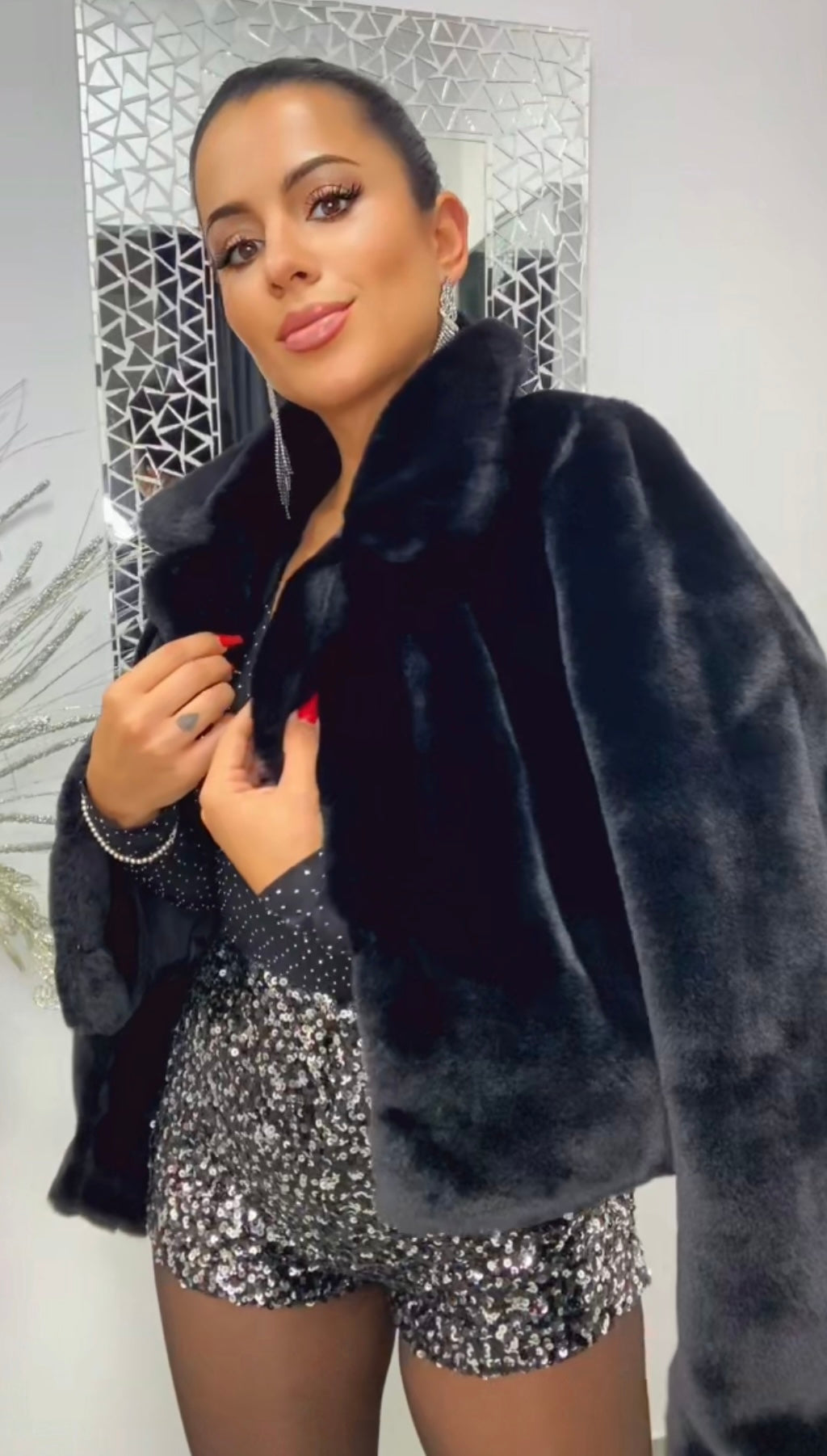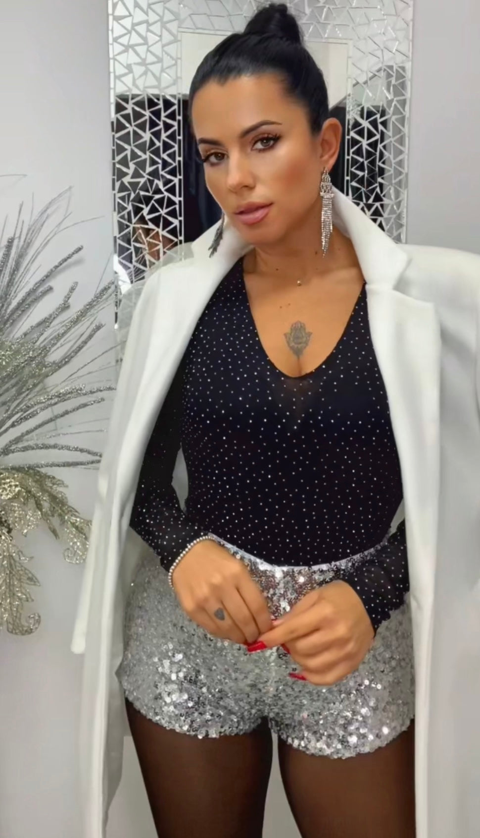 Confeccionado en tejido lentejuelas elástico,lleva forro al tono,lleva cintura elástica para adaptarse, ideal para estas fiestas.