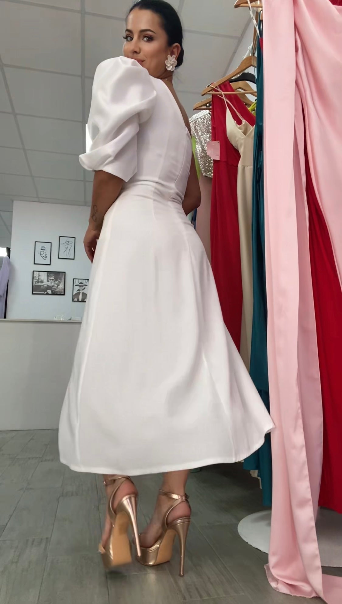 Confeccionado en tejido crepe, tela con algo de licra,lleva forro de licra al tono,largo midi con abertura en una pierna,muy buena calidad,tiene mucha caida,preciosa manga asimétrica,cremallera trasera,FABRICADO EN ESPAÑA.