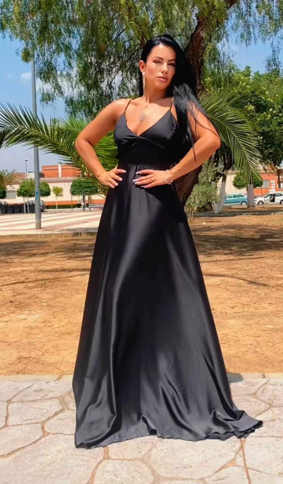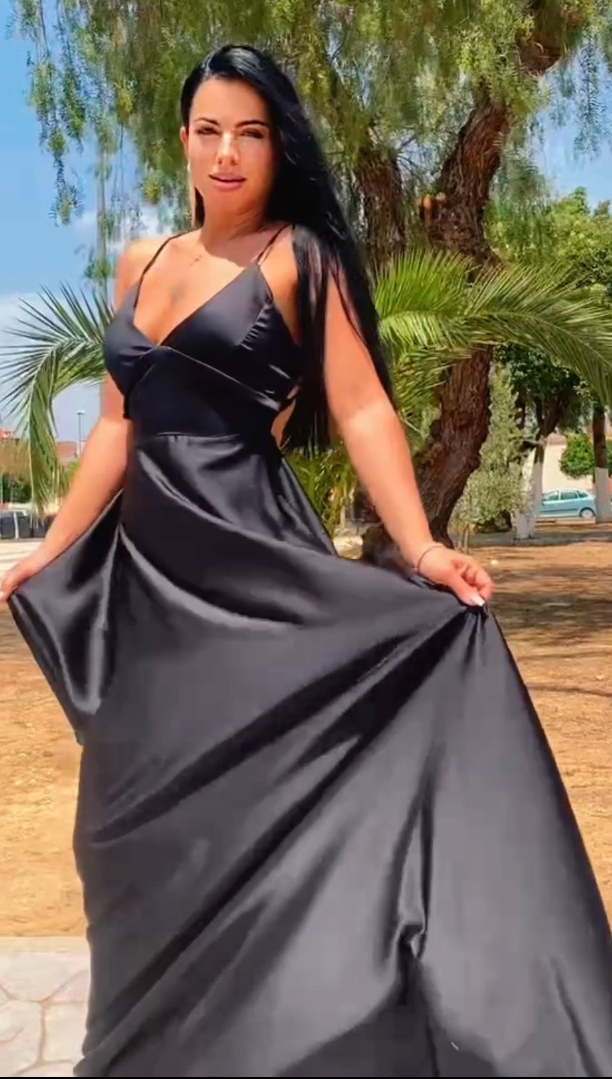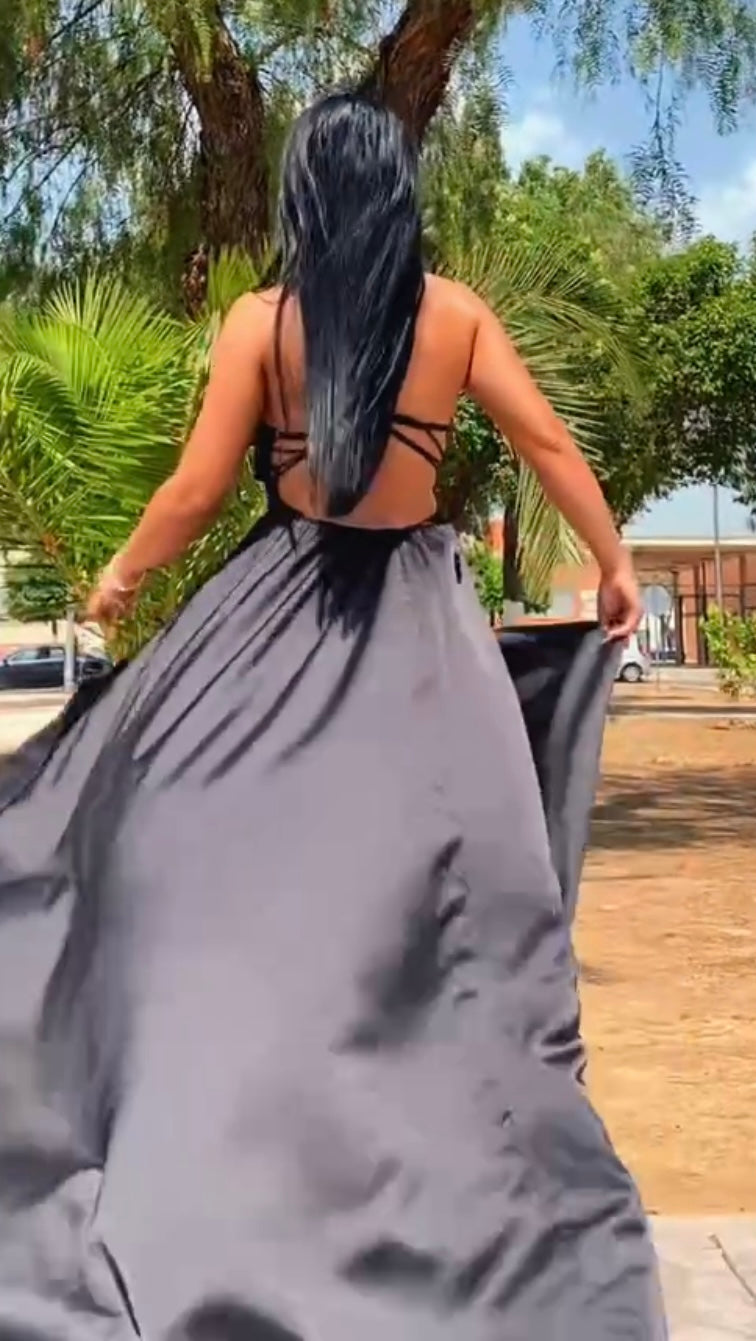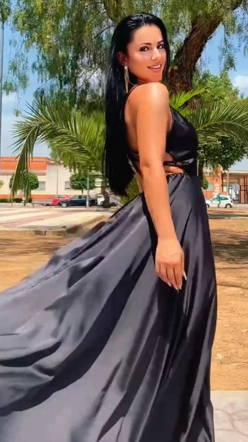 Espectacular vestido confeccionado en tejido de satén de seda,el tejid tiene una caida increíble,lleva cola,escote incluye cascos push up,preciosa espalda descubierta,lazada que te la puedes ajustar a tu talla.PERFECTO PARA TUS FIESTAS Y EVENTOS.