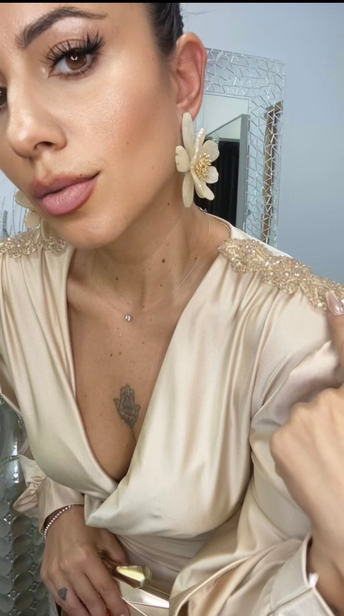 Precioso vestido confeccionado en tejido licra tupida satinada, corte entallado con detalle de nudo en cintura, mangas con abertura, precioso detalle de pedrería en los hombros al tono, abertura en una pierna, es un largo por el tobillo o hasta abajo dependiendo de tu altura, perfecto para tus fiestas y eventos.
