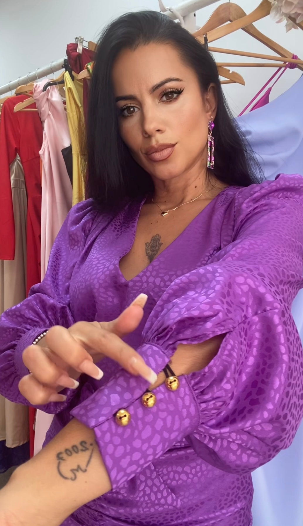 Confeccionado en tejido seda estampada al tono precioso tejido,corte entallado con drapeado en cintura,abertura en el centro,escote en v,preciosas mangas fruncidas con detalles de botones dorados,incluye hombreras,abertura en la espalda,incluye cinturón, perfecto para tus fiestas y eventos.