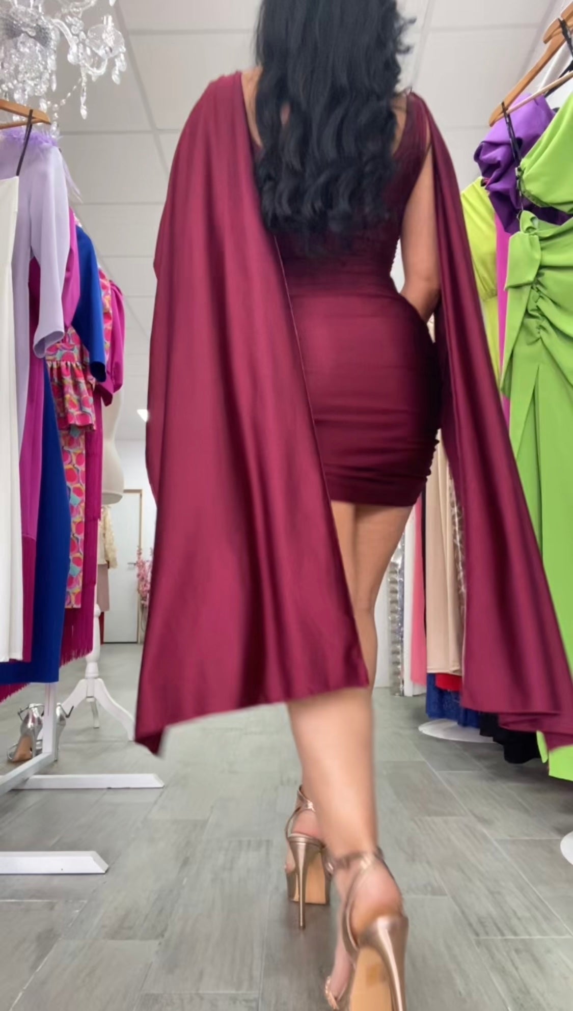 Confeccionado en tejido licra satinada, corte entallado con diseño drapeado,puedes ponertelo más o menos largo, opción el vestido lleva tirantas anchas y detalle de capa, es muy cómodo y muy versátil para cualquier ocasión.