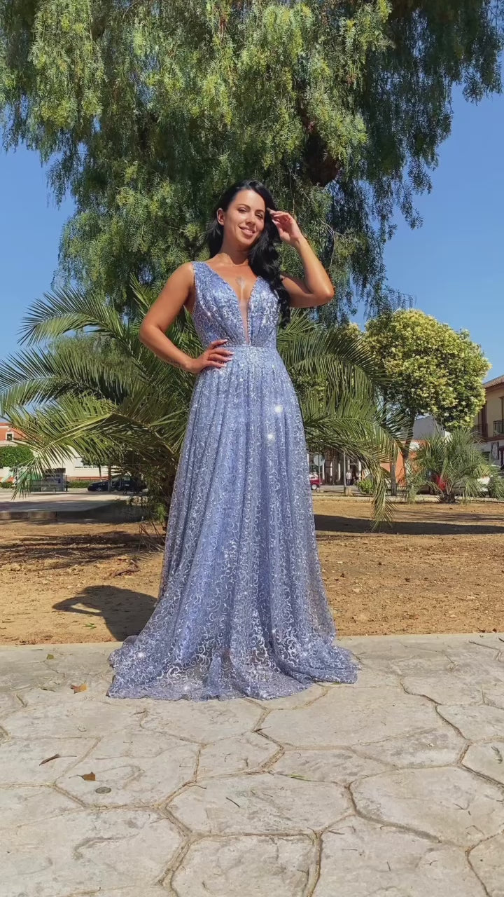 PRECIOSO VESTIDO CONFECCIONADO EN TEJIDO TULL CON BRILLOS DE PURPURINA EN TONOS PLATA,FORRADO EN SATÈN AL TONO.CORTE PRINCESA MUY VAPOROSO Y ESPECTACULAR.ESCOTE EN V CON DISEÑO TULL TRANSPARENTE,INCLUYE CASCOS PUSH UP.UN DISEÑO QUE ACENTÙA Y AFINA TU CINTURA.CREMALLERA INVISIBLE TRASERA.